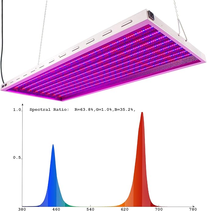 • Full 2X2Ft 100W/4X2Ft 200W output and big coverage LED Grow lights with High PPF/W and White 5500K and VegGrowing and Bloom spectrum great for all stages of Indoor Graden