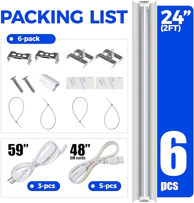 • Easy Installation: With included tape, clips and cable ties, you could install the led grow light strips by yourself in minutes. You could link up to 10 lights in a series