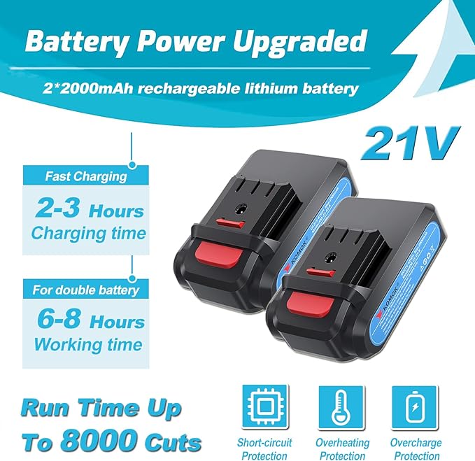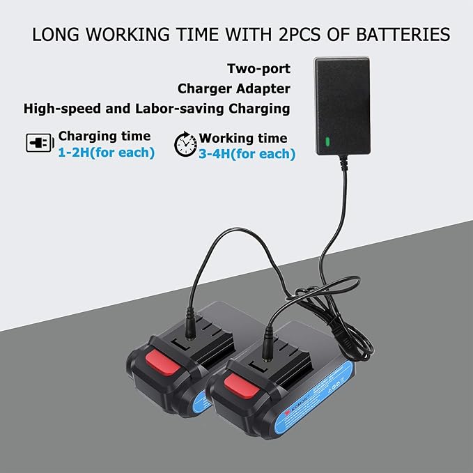 • 【Long Life & Power Display】-- The electric pruners has 2 pcs 21V, 2Ah rechargeable lithium batteries, long battery life, 1.5 hours fast charging, continuously working cut about 8000 times after being fully charged. And come with digital display, tells you just how much power you have left, so you’ll always know where you stand, and you’ll have enough charge to get the job done