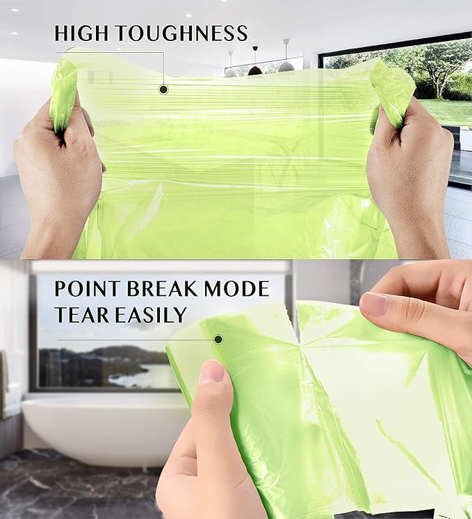 • Multipurpose Trash Bags - The compostable bags is clear green, which helps us identify the content of the garbage, so as to better sort the garbage. It is suitable for offices, kitchens, bathrooms, bedrooms, living rooms, baby diapers and garbage recycling.