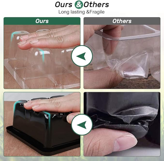 • Heat Mat Compatible: These seed trays are designed to withstand high and low temperatures, making them perfect for use with a heat mat without worrying about warping or melting.