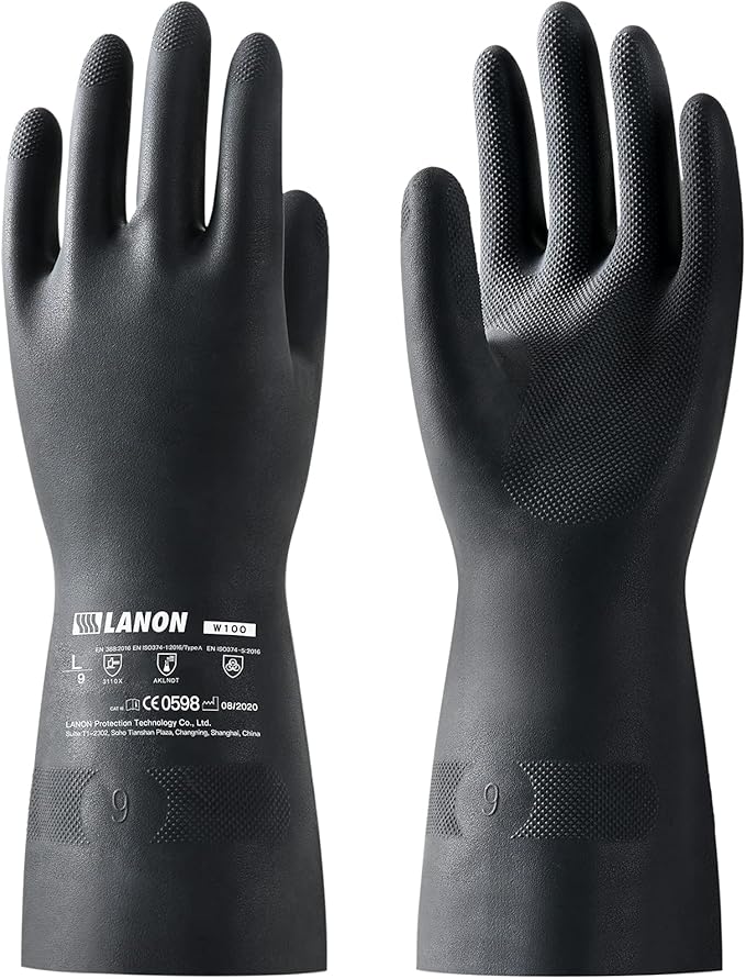 LANON Rubber Chemical Resistant Gloves, Reusable Heavy-duty Safety Work Gloves, Acid & Alkali Protection, Non-Slip, XX Large