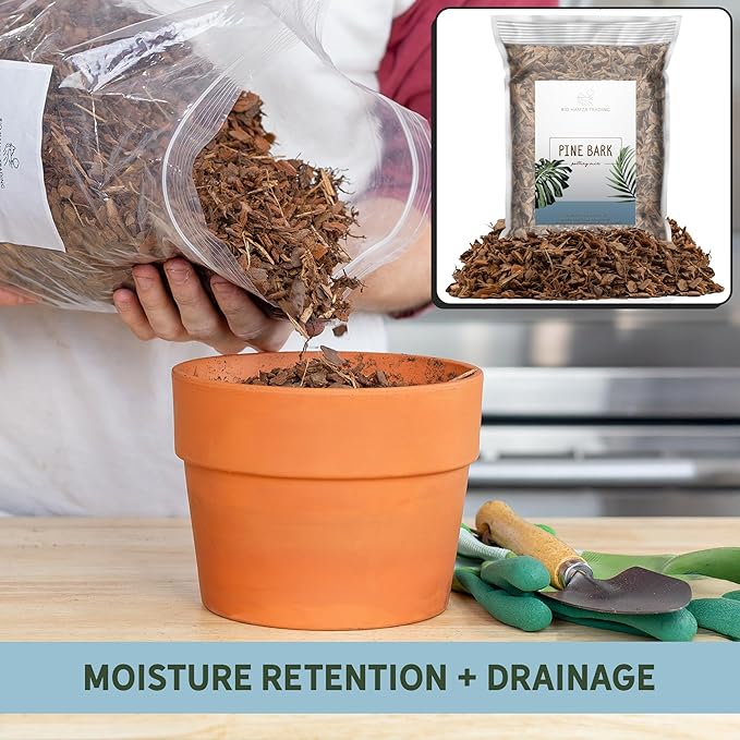 100% Natural Pine Bark Mulch Nuggets (8 Quarts), Small Mulch Chips for Indoor/Outdoor Container Gardening, Ideal for Soil Supplement, Houseplant Mulch
