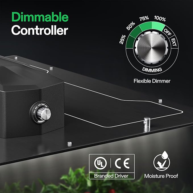 • Convenient Dimmable Lights: This LED grow light has a dimming knob & ballast, so it adapts to different plant growth stages by adjusting its output from 25% to 100%