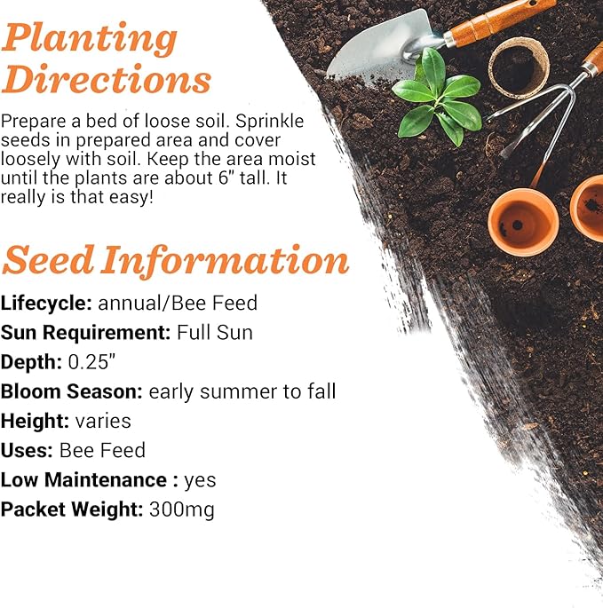 GIFT: Our seed packs make the perfect gift for any flower, bee, or nature lover in your life. Planting our seeds, caring for their growth, and then watching the resulting colony of bees pollinate the lovely flowers is sure to put a feel-good smile on anyone's face. Our bulk individual seed packets are great for new homeowners, realtors, or anyone with (or without) a green thumb! Packet size: 3 ¼" x 4 ½".