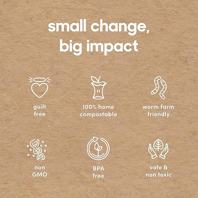 • INCLUDES COMPOSTABLE PACKAGING: All our products are printed using only soy or water-based inks & will last up to 12 months on the shelf; Store in a cool, dry place, such as a cupboard or drawer, & you’ll have plenty of time to use them