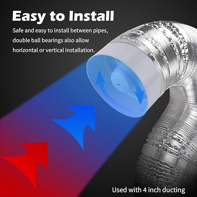 • Widely Used Grow Tent Fan -- The 4 inch inline fan is widely used in homes,pets, offices, warehouses, restaurants, bars, shops, shopping malls, grow tents, greenhouses and other places where a lot of air is needed.