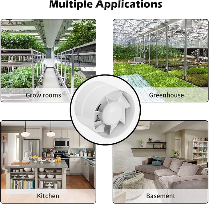 • Widely Used Grow Tent Fan-- The 5 inch inline fan is widely used in homes, pet,offices, warehouses, restaurants, bars, shops, shopping malls, grow tents, greenhouses and other places where a lot of air is needed.