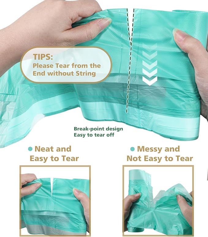 • Multifunctional Compostable Garbage Bags: Translucent trash bags help you to easily view and identify what kind of contents are contained in the waste basket trash bags so that you can separate recyclable from non-recyclable materials, solve all garbage problems in your home, is a good helper in your life. Suitable for office, kitchen, bathroom, bedroom, living room, baby diapers, car, cleaning pets' litter and trash recycling
