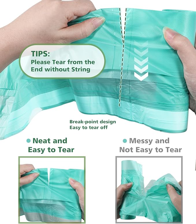 • 【Box Dispenser Design】Convenient tissue box design makes it easy to grab one mini trash bags at a time, which do much help in storing these small trash bags. In Terms Of Detail, The breakpoint design makes small trash bags easy to separate them and avoid the trouble of tearing.You can put a roll of garbage bags in your rooms, living room, bathroom, your kitchen and your car, etc.