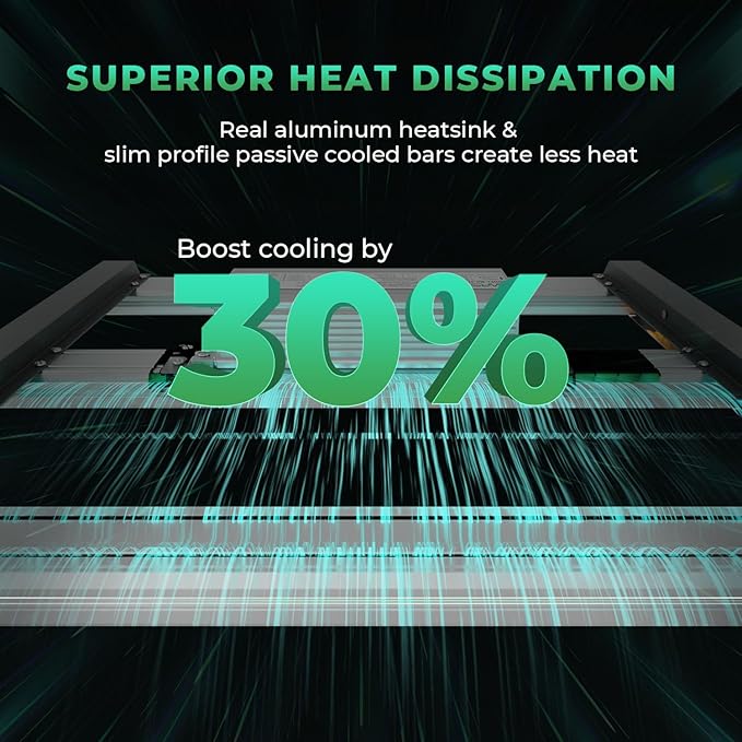 • SUPERIOR HEAT DISSIPATION: The the Aluminum heatsink with slim profile bars reduce heat keeping your growing space at the perfect temperature; real Aluminum heatsink & 4 slim profile passive cooled bars (THINNER & LARGER surface) creat less heat, drop 50% in electricity bill than HID lights!