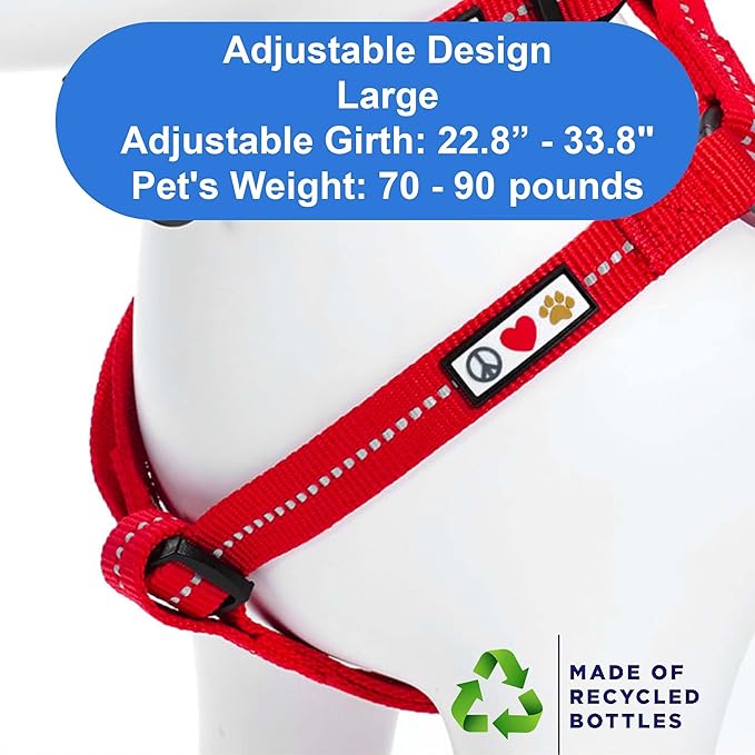 Pawtitas Recycled Dog Harness with Reflective Stitched a Puppy Harness Made from Plastic Bottles Collected from Oceans Large Red Chilli