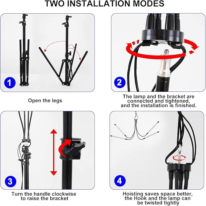 • ☼Easy to Install: the tripod of plant lamp can be easily rotated and butt connected with the screw hole at the bottom of the lamp when the top screw is expanded. The height of the tripod can be adjusted at any time within 15-72in. You can adjust the height to stand in the indoor place.