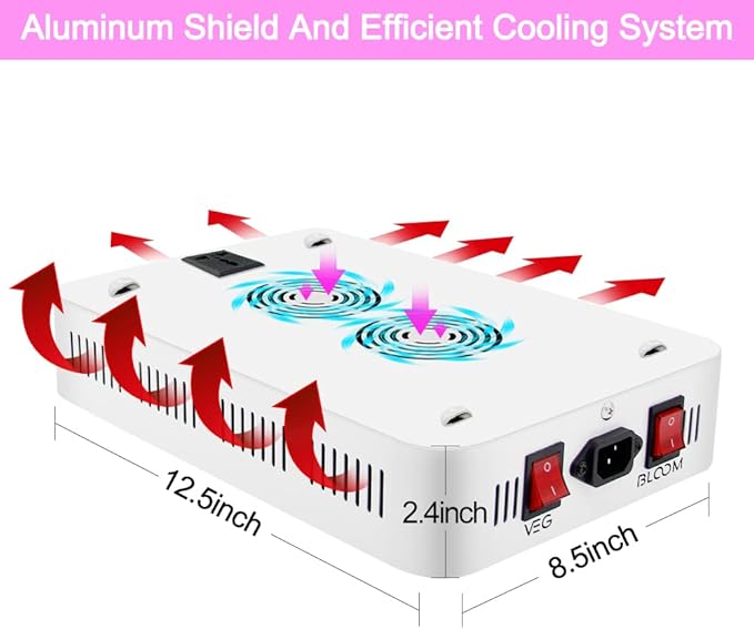 • 🌿 Upgraded & Efficient Cooling System: Our plant grow lamp has two built-in high-speed silent cooling fans,upgraded aluminum radiator and temperature controller,forming a powerful cooling system. Even when working for a long time,the LED grow light can be kept below 50°F. Good heat dissipation ensures the long life of the grow lamp.(lifespan;50000 hours)