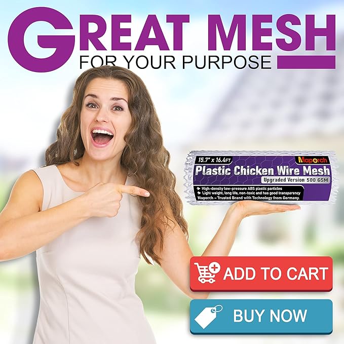 • PERFECT SIZE: With dimension (15.7" x 16.4FT), our plastic chicken wire is big enough to enable you to cut off any shape that you need with our cutting scissor (Included).