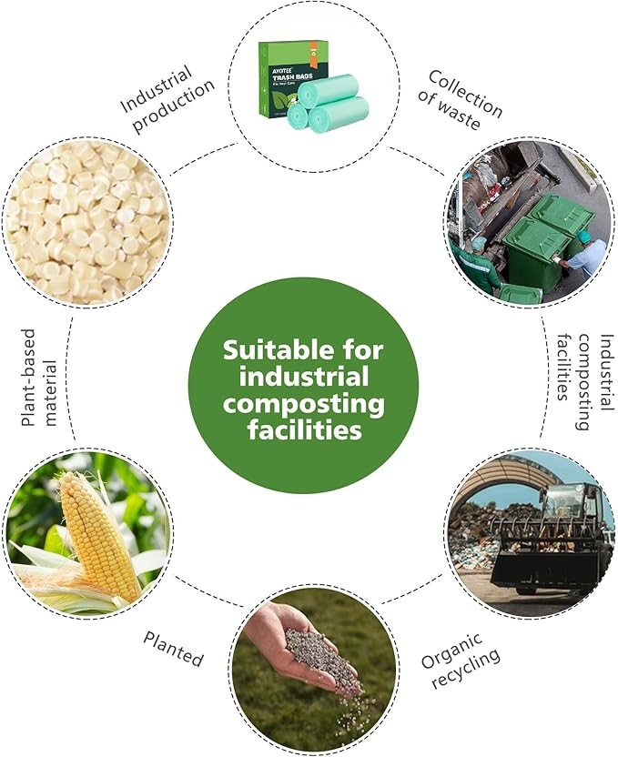 • ✔【60 Counts Small 4 gallon trash bags】Our small garbage bags are all made of Plastarch material(PSM), certification by the U.S. standard ASTM Bioplastics Based On Natural Renewable Plant Starch Extract, These small compost trash bags can be rapidly degraded in municipal industrial composting facilities (at 50-60°C constant humidity), to avoid harm to the environment