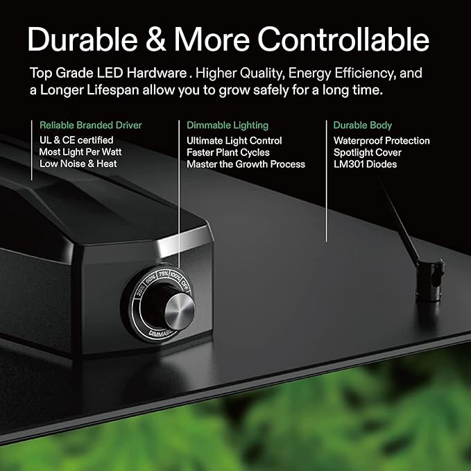 • Sunlike Full-Spectrum Light: 2 x VS2000 full-spectrum LED grow lights provides the power needed by your plants at all growth stages and maximum PAR output at various distances, supporting the photosynthesis of your plants in an efficient way