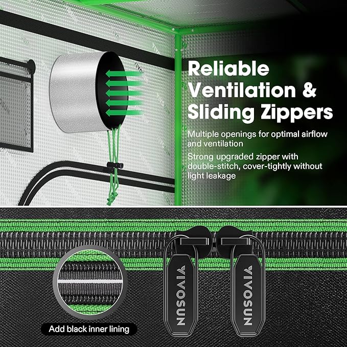 • Promote Plant Growth: Vivosun grow tents are equipped with a lined zipper double stitched to prevent light leaks; made of 100% reflective mylar to ensure plants fully absorb lights’ nutrients and energy