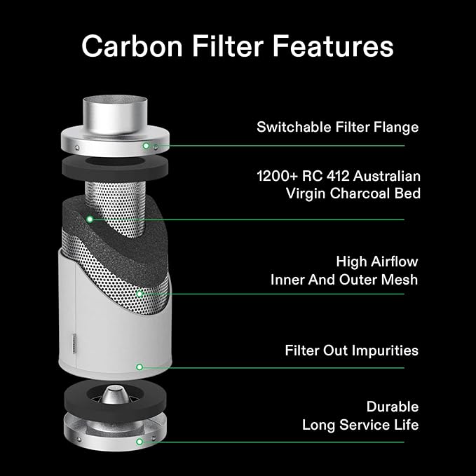 • Effective Ventilation: Comes with a heavy-hitting blower with a fan speed of 2300 RPM for an airflow of 190 CFM; Moves air through the target location quickly and efficiently for optimal ventilation; The carbon filter eliminates some of the most undesirable, pungent smells