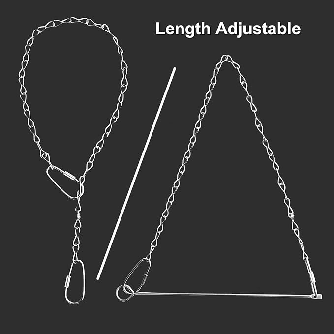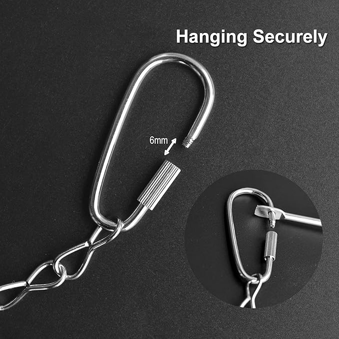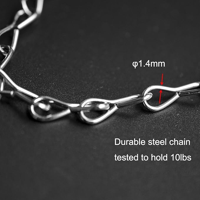 • Hanging chick feeder with longer steel chain, max to 24 inch, the lock catch hooks allow to adjust the length fitting for the cages or more situations