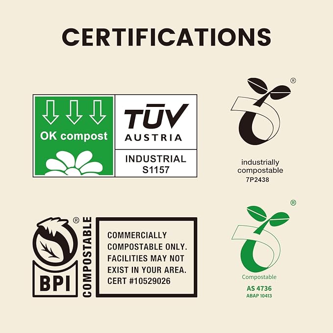 • Please note: Commercial composting facilities may not be available in all areas. We recommend verifying local availability to ensure compliance with composting requirements