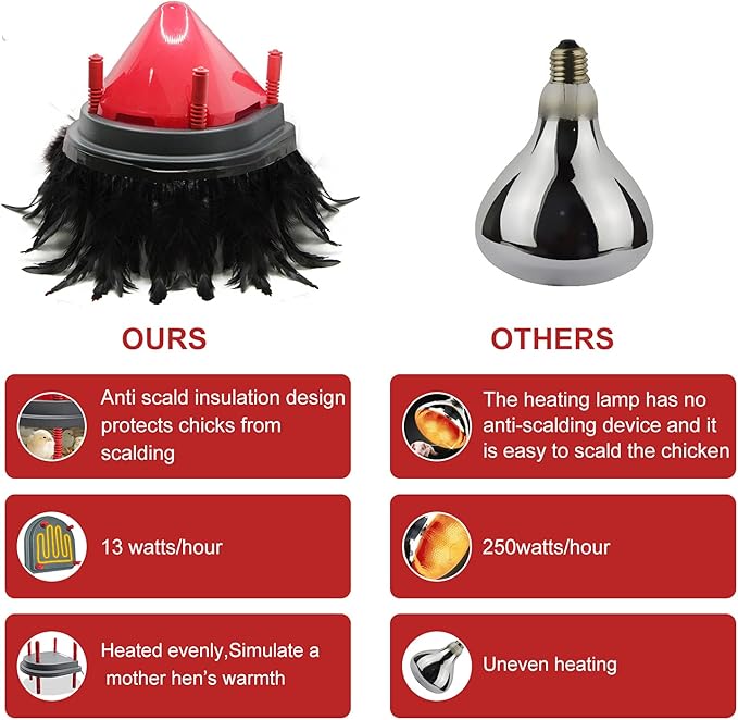 • 【Super Energy Efficient】Brooder heater plate has a very low cost through high insulation,save 75% on electricity costs compared to a heating bulb.Only 13 watts/hour❗