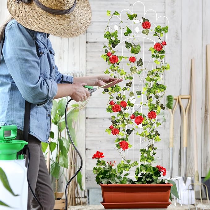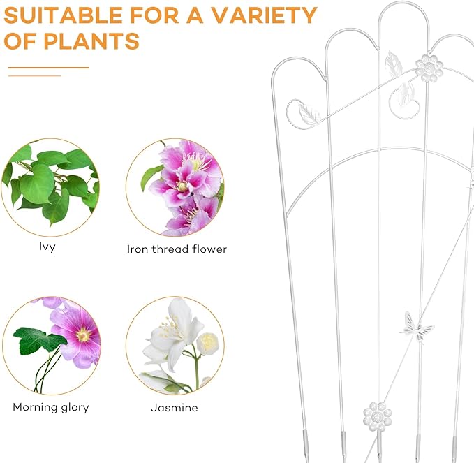 • MULTI-PURPOSE PLANT SUPPORT: More plants may be shown using plant trellises, including climbing roses, cucumber vines, ivy, clematis, morning glory, grapes, and long-stemmed potted vegetables, among others. When utilized as a barrier, trellises for outdoor climbing plants may enhance the aesthetic of your home or yard.