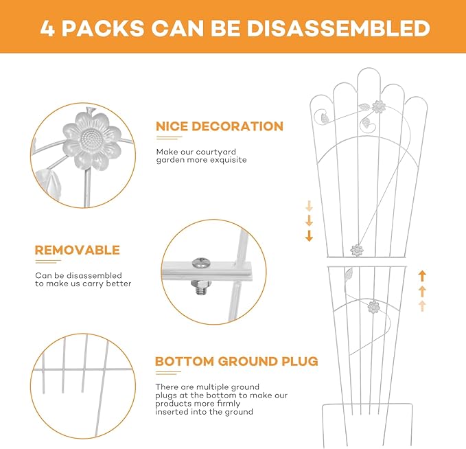 • EASY TO ASSEMBLE PLANT TRELLIS INDOOR: The indoor plant trellis is really simple to put together and take apart. Installing plant support for indoor plants merely takes a few seconds; simply place it in the ground and fasten it next to the wall, flowerpot, or fence. After disassembling, save space, and simplify your life.