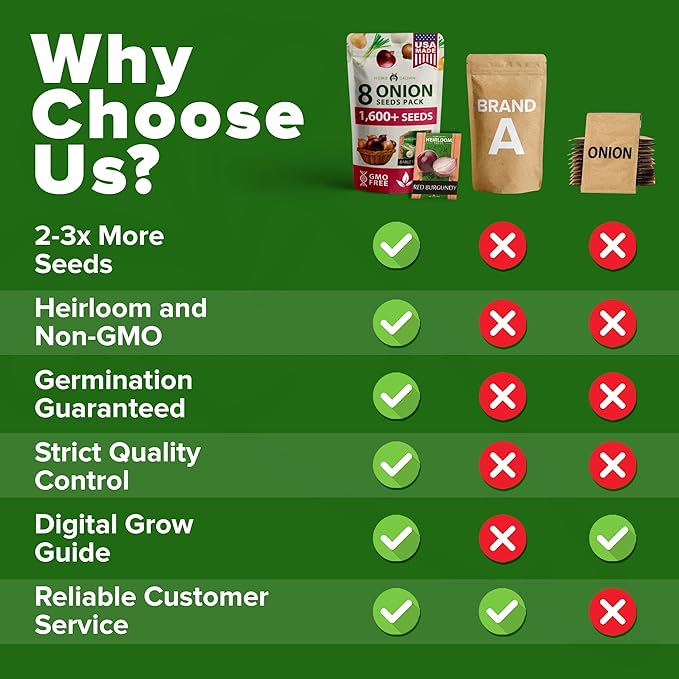 HOME GROWN 𝗨𝗦𝗔 𝗣π—₯π—˜π— π—œπ—¨π—  8 Onion Seeds for Planting – 1,600 Heirloom 𝗑𝗒𝗑-π—šπ— π—’ Vegetable Seeds – Grow Sweet, Yellow, Red, Spanish, Green & Vidalia Onions in Outdoor or Indoor Home Garden