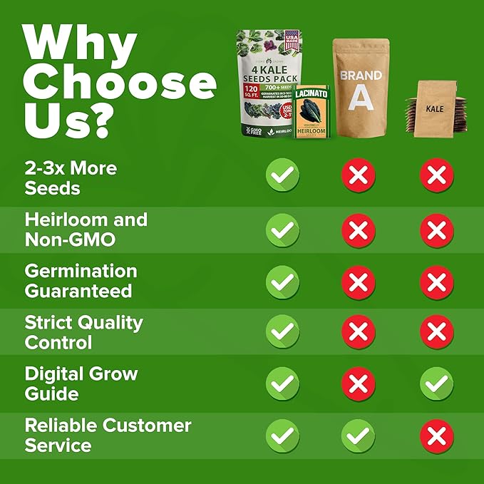 • WE PLANT ALONG WITH YOU - Feel confident in growing our 4 varieties of kale seeds with our digital grow guide, which provides easy to follow instructions that even beginners can understand.
