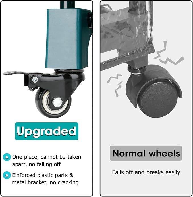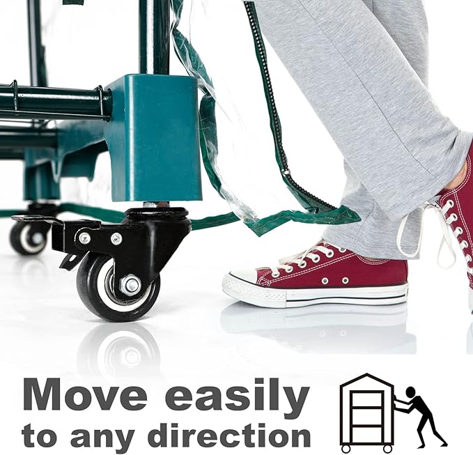 • 🔸UPGRADED CASTER WHEELS: This greenhouse comes with 4 upgrade heavy duty swivel casters. 2 castors wheels with brakes, the other 2 without. These sturdy casters are made of metal and premium plastic that make them stronger than normal plastic wheels. Also, they can rotate 360 degrees very Smoothly.