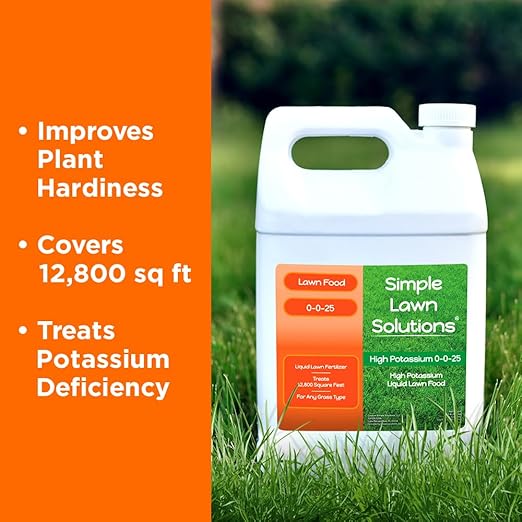 Simple Lawn Solutions - High Potassium Lawn Food Liquid Fertilizer 0-0-25 - Concentrated Spray - Turf Grass Vigor and Plant Hardiness - Summer and Fall - Any Grass Type (1 Gallon)