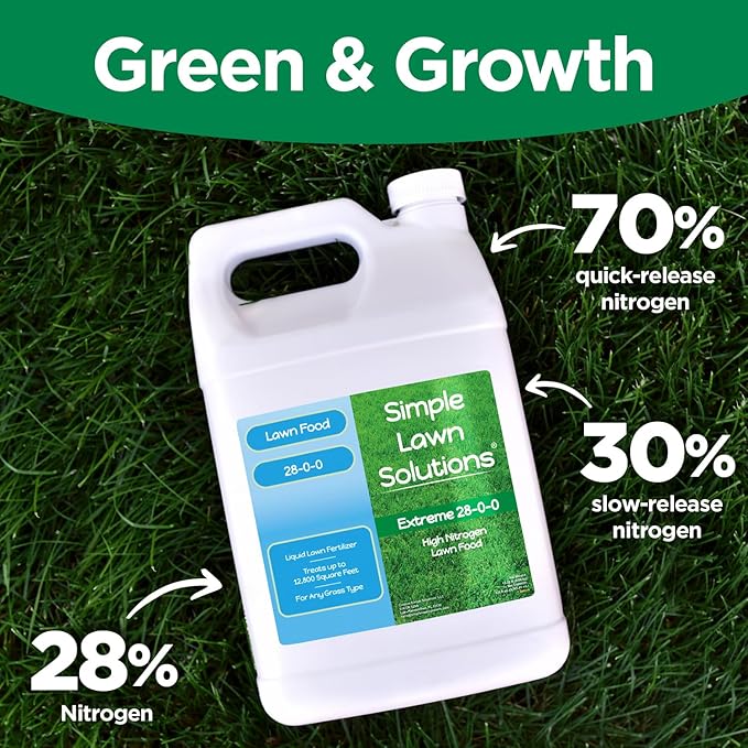 Maximum Green & Growth Fertilizer High Nitrogen 28-0-0 Lawn Food Liquid Fertilizer- Spring & Summer- Any Grass Type- Simple Lawn Solutions - Concentrated Quick & Slow Release Blend (1 Gallon)