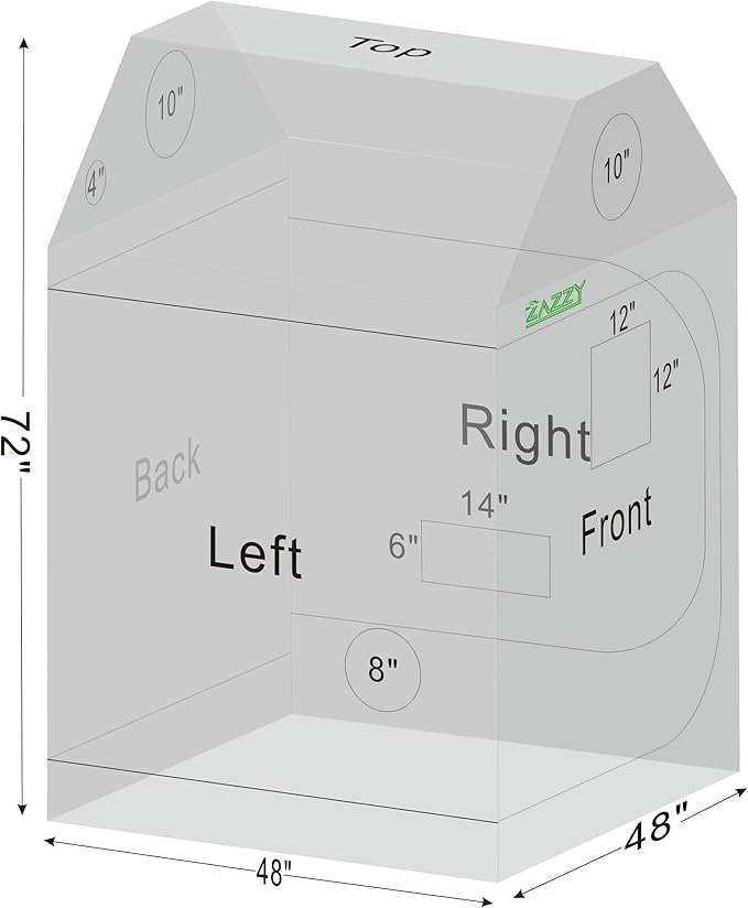 zazzy Grow Tent 48"x48"x72" Roof Cube Plant Grow Tents with Observation Window and Removable Floor Tray for Indoor Plant Growing Seedling 4x4
