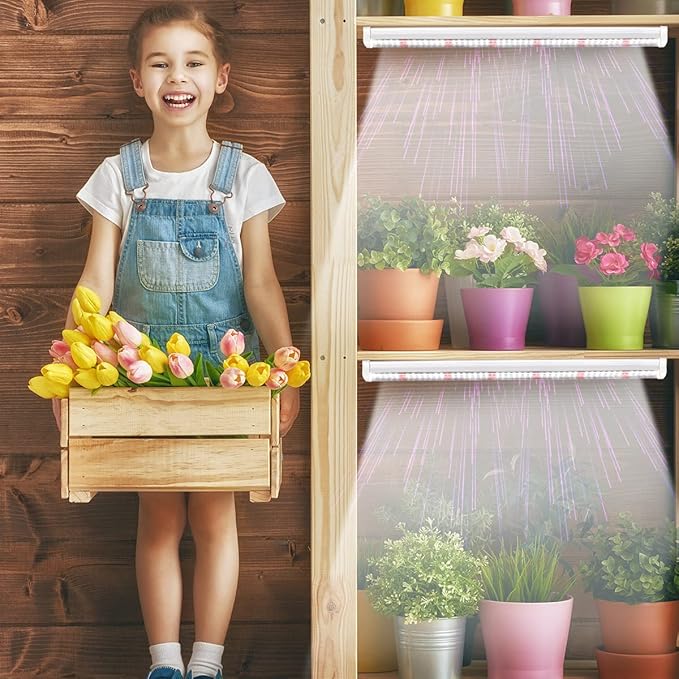 • 🪴5000K FULL SPECTRUM LIGHTS - Each hanging grow light bar is equipped with super bright 45pcs white light beads + 6pcs red light beads. 5000K white light is suitable for all sort of indoor plants, red light contributes to germination, flowering and result.