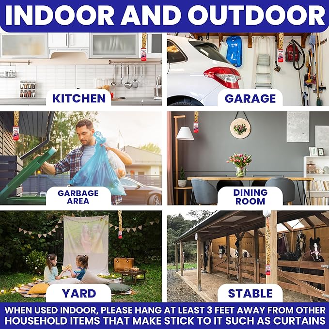 • SUPER STICKY. Our fly ribbon is made with extremely sticky glue that will trap virtually all bugs, making it a great fly paper for indoor home or fly tape outdoor.