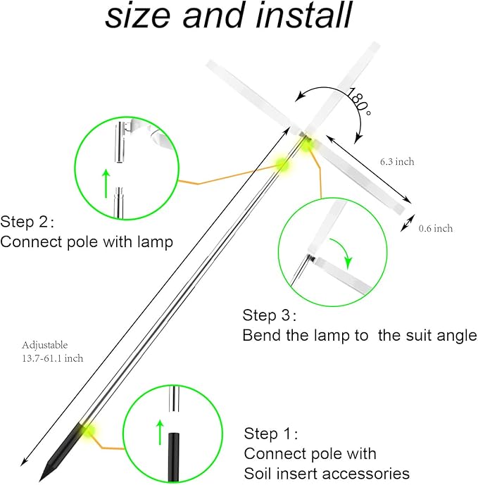 • Height Adjustable Up to 61.1" - The height range is 13.7"-61.1", The pole does telescope up and down as well which is handy it can grow the plant to stay at a reasonable height,also it will cover a pretty larger space to shine light on more plants in close proximity when it is fully extended.