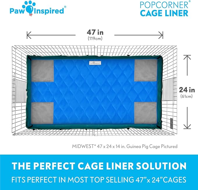 Paw Inspired PopCorner Guinea Pig Cage Liners | Washable Fleece Bedding or Pet Bed Mat for Small Animals | Super Absorbent Pee Pad with Reinforced Corners and Waterproof Bottom (Midwest, Blue)