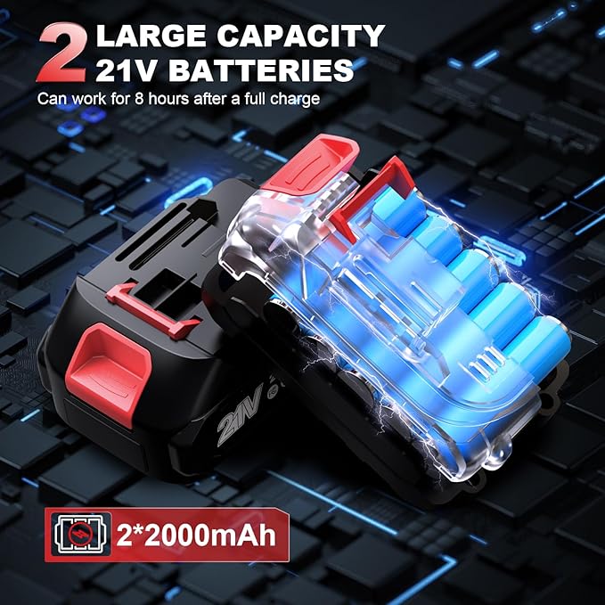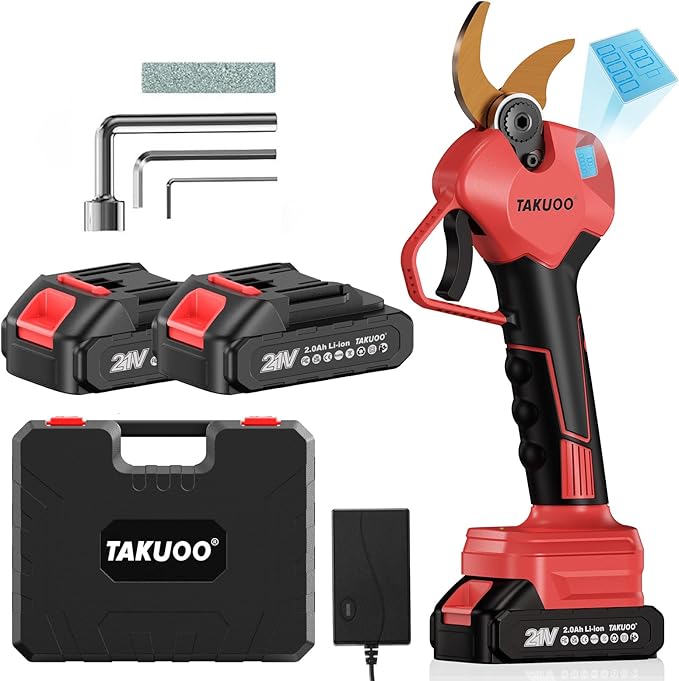 • Dual Batteries for Extended Use: Equipped with two 2.0Ah batteries, these battery pruning shears double your cutting time. Perfect for full-day work, the electric branch cutter trims without frequent recharging.