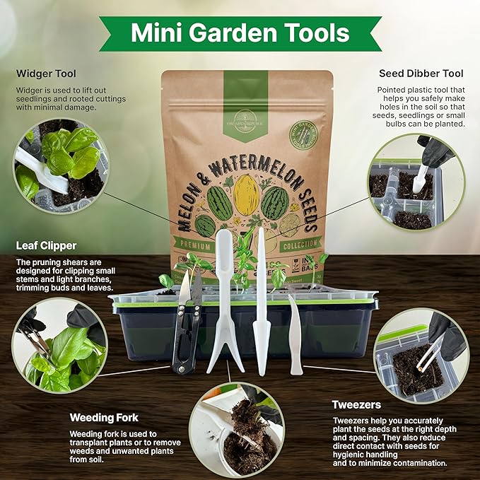 • Gardening Kit: 7 Melon & Watermelon Seeds Variety Pack NON GMO Heirloom Seeds LESS THAN $2.00 PER SEED VARIETY PACK 480+ seeds including: Cantaloupe Imperial, Cantaloupe Minnesota Midget, Melon Canary Yellow, Melon Honeydew, Watermelon Crimson Sweet, Watermelon Jubilee, Watermelon Sugar Baby.