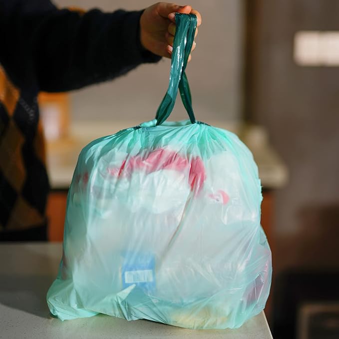 • Our biodegradable trash bags feature a drawstring design for added convenience. They are sturdy and leak-proof, making them ideal for kitchen waste, office wastebaskets and everyday household use.