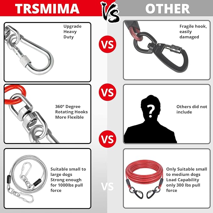 • 🐶High Tensile Strength:jenico dog wire leash cable is a heavy duty dog chain, made of 5mm high-strength galvanized steel wire rope with PVC coating,which are professionally tested for tensile and quality, it can withstand up to 85KN of tensile force.providing superior strength and durability against breakage!Good corrosion resistance, will be reliable to use.