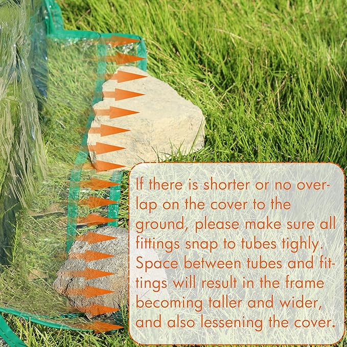 • Sturdy Frame - High quality steel framework is heavy duty to protect plants against extreme weather. Easy to setup and use with no tools assembly required. The clear cover should be tied to the frame preventing from blowing away. The portable greenhouse is lightweight and stable to be a shelter for your plants to extend the growing season.