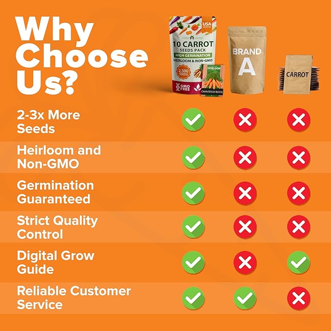 • NON-GMO, HEIRLOOM CARROTS SEEDS FOR PLANTING - Meticulously harvested & examined open pollinated planting seeds from trusted local suppliers expert in USDA zones. Guaranteed high quality and safe vegetable seeds for planting in the home garden.