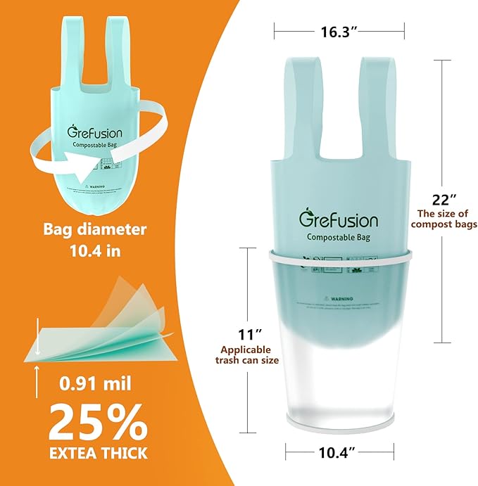 • 【STURDY COMPOST BAGS &UPDATE SUPER THICK 】We are Proud of update the design of GreFusion compost bag thick for get carry weights,As kitchen trash can bags are able to withstand a heavy load of wet food waste and hot coffee grounds without any ripping.and sturdy enough with less chance of perforation by sharp leaves. keep a grefusion compost bin bags come in the home and go with confidence to stop the mess .