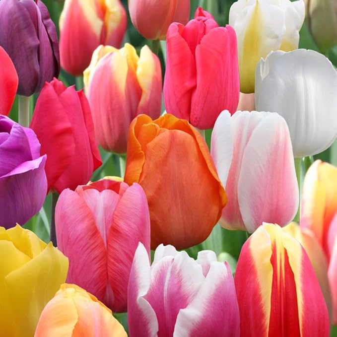 • 100 COLOR YOUR GARDEN PACK: This beautiful Tulip flower mix is great for beginners or expert gardeners! All 100 bulbs are included in a quality made colorful carry box. Each bulb is jumbo sized 10/11cm that come in mixed colors including pink, red, yellow, orange purple and more!