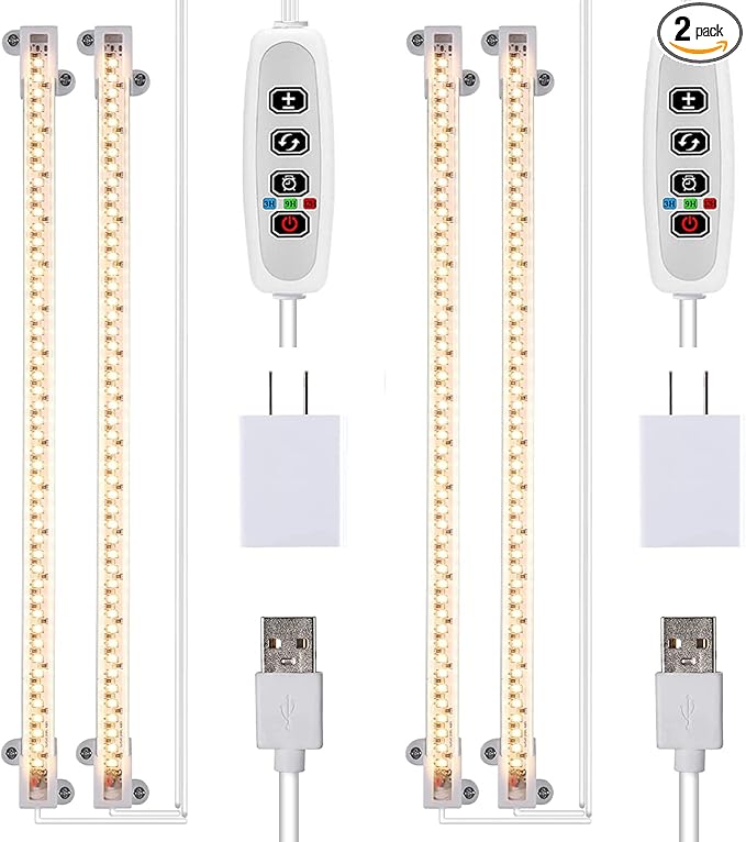 Plant Lights for Indoor Plants, Full Spectrum Growing Lamps for Indoor Plants, Auto On & Off Timer, 10 Dimmable Levels Grow Light Strip for Hydroponic Succulent Seedling (2 Strips x 2pcs)