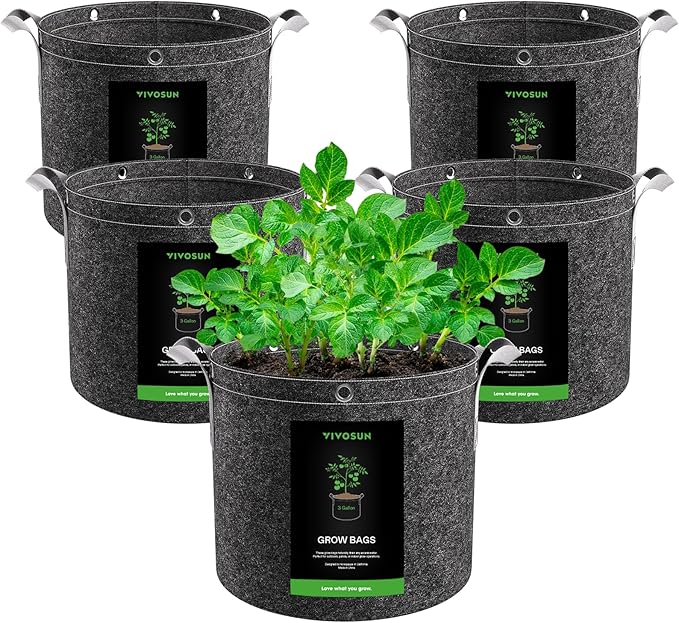 VIVOSUN 5-Pack 3 Gallon Grow Bags, 500G Thick Nonwoven Fabric Pots with Strap Handles, Multi-Purpose Rings, for Low Stress Plant Training Fruits, Vegetables, and Flowers