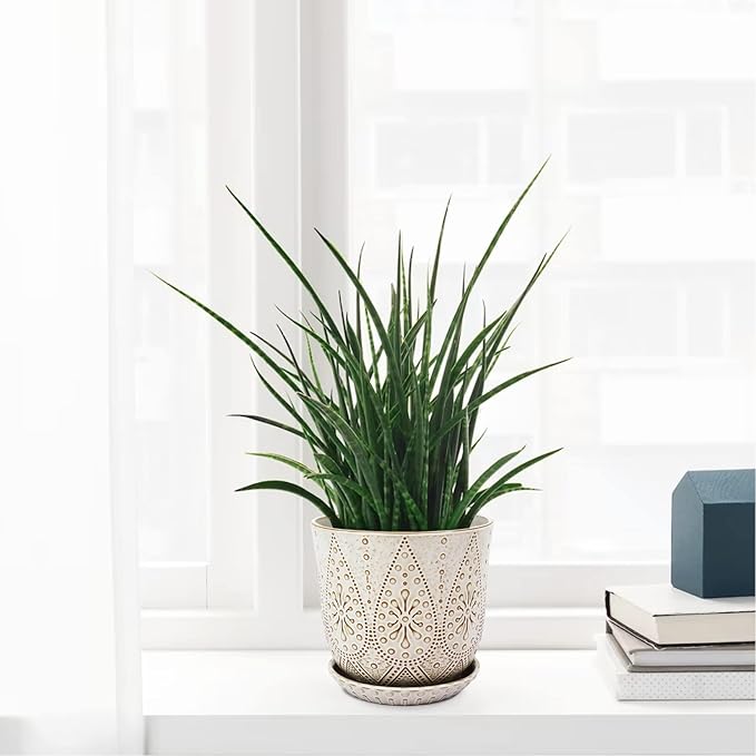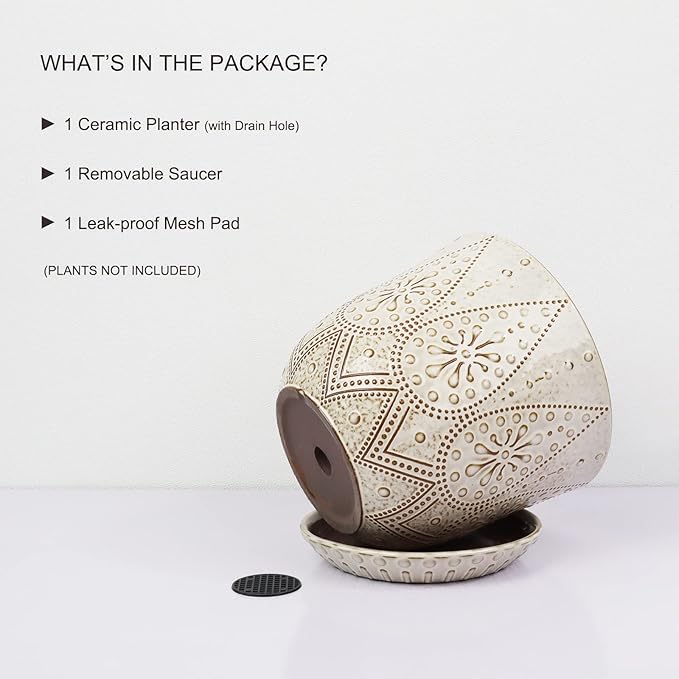 Gepege 8 Inch Plant Pot, Creamy White Ceramic Planter with Drainage Holes and Saucers for Plants Indoor and Outdoor Flower Pot