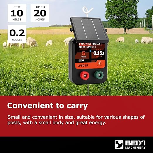 • Solar Electric Fence Charger: The solar-powered electric fence charger is a high-efficiency device that can power up to 5 miles or 20 acres of electric fence, providing a reliable source of energy for your livestock.